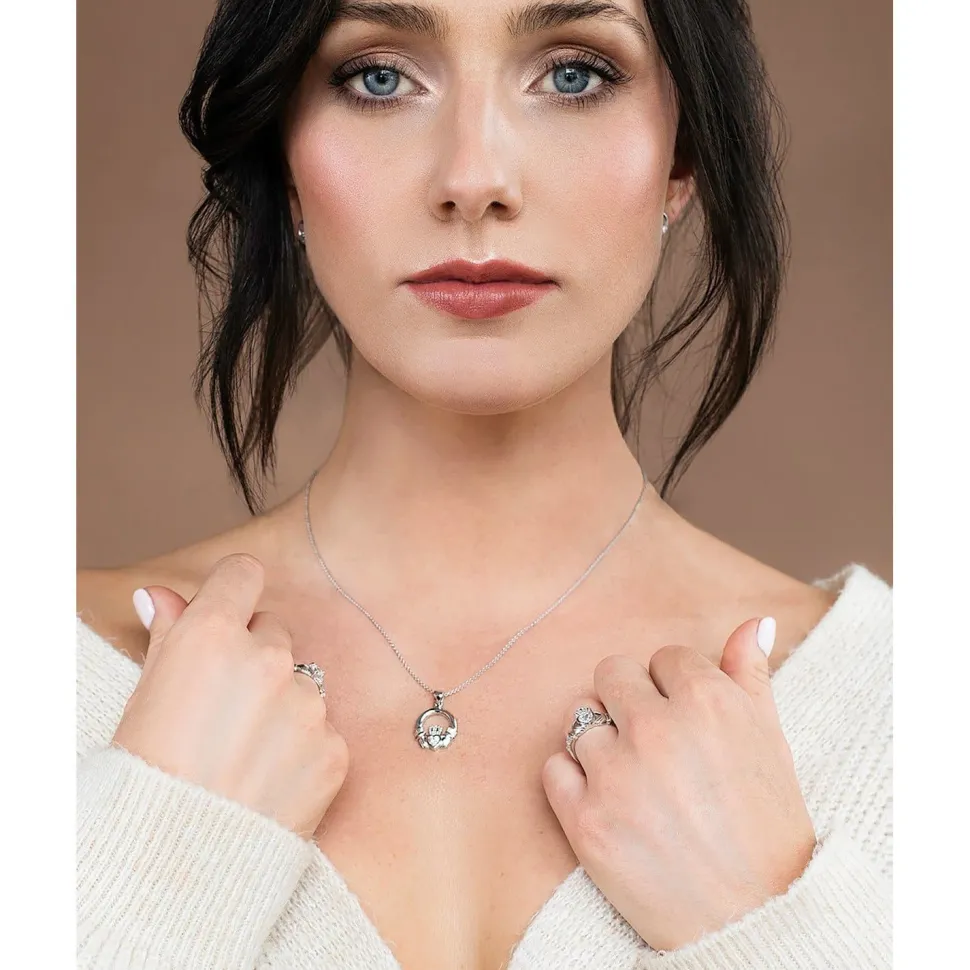 Our Claddagh Pendants are perfect for wearing as an every day accessory or for keeping for special occasions! This beautiful sterling silver pendant is designed around the Claddagh symbol, symbolising Love, Loyalty and Friendship. Pair it with the matching earrings from the Claddagh Collection. Comes presented in a gift box, perfect for gifting!