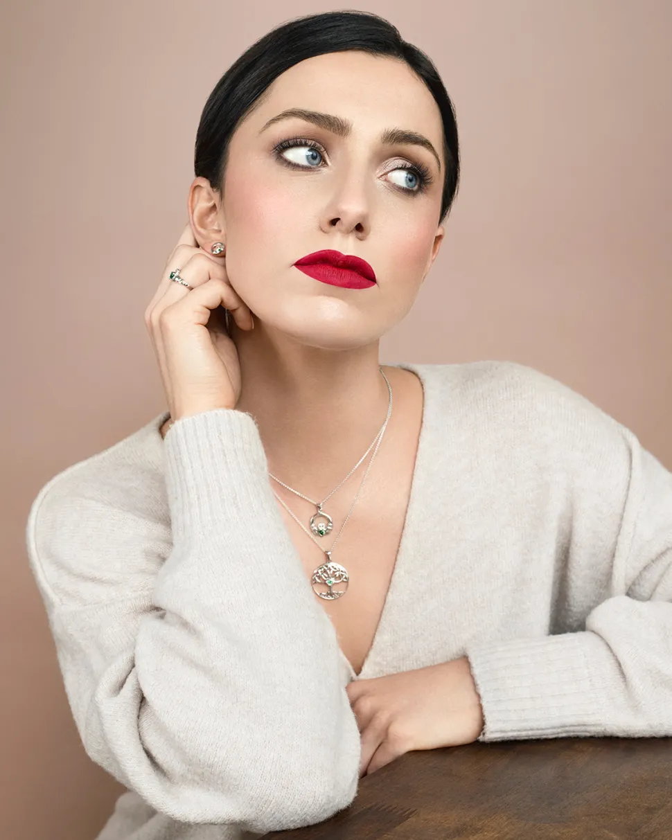 Tree Of Life Green Crystal Sterling Silver Pendant