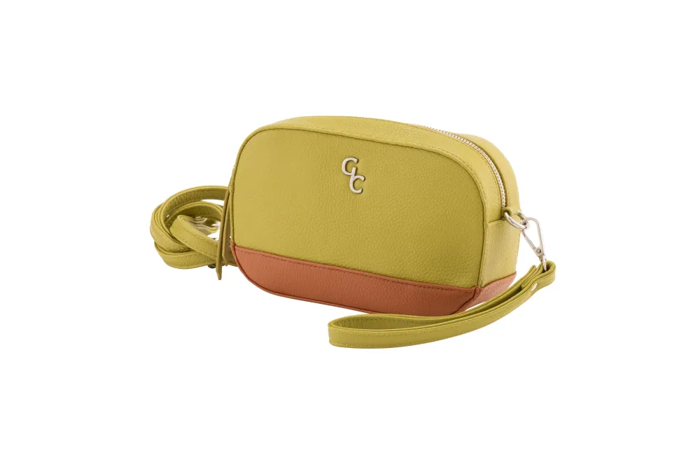 Our Galway Crystal two tone lime & tan cross body bag is casual but classy and perfect for carrying all of life’s little essentials. The long adjustable leather strap means this bag can be worn cross body or on the shoulder, the strap can also be removed completely to be used as a clutch. This stylish handbag will take you effortlessly from day to night!