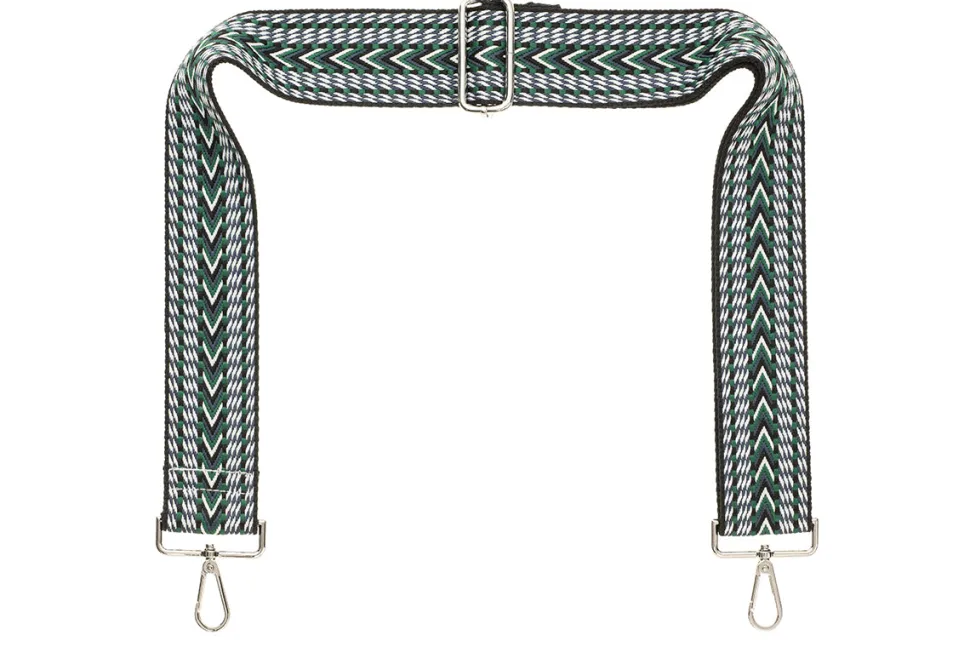 Black Green White Chevron Camera Strap – Silver hardware
