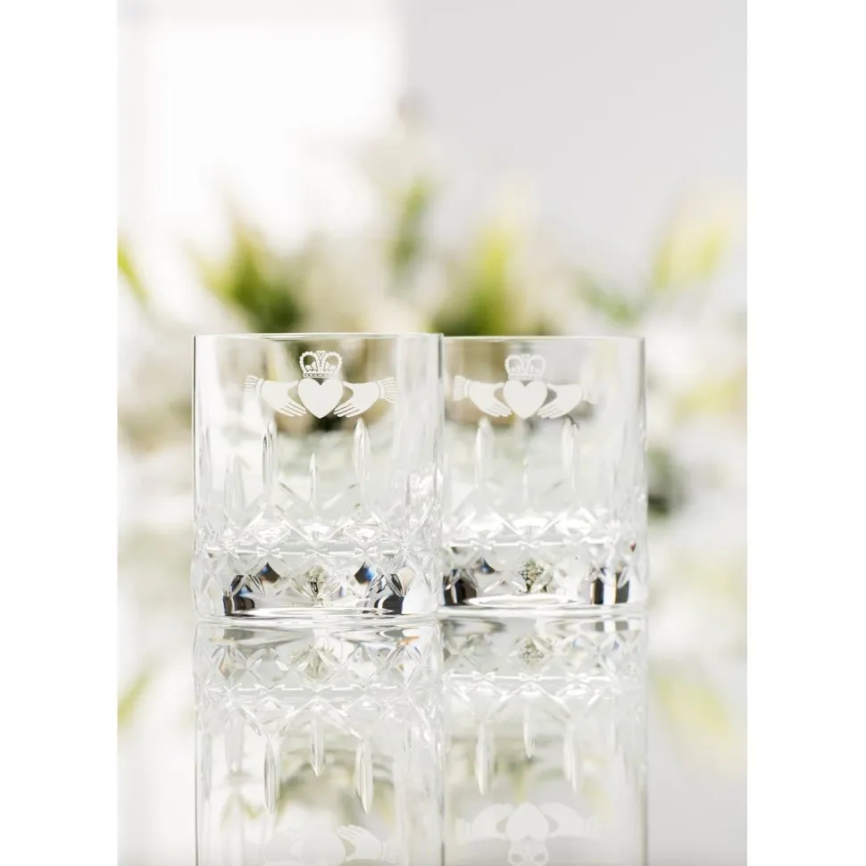The Whiskey DOF Glass is the most common type of whiskey glass. Our Claddagh Whiskey glass is the perfect glass for filling with ice/whiskey stones and a whiskey of your choosing. This durable and heavy cut glass fits perfectly in your hand and is a must have for any whiskey fan. It’s one of the longest running Galway patterns we have and it is very common to be handed down from generation to generation. The ideal gift for the whiskey lovers out there as not only is this glass beautifully cut but it also includes the Claddagh Symbolism.