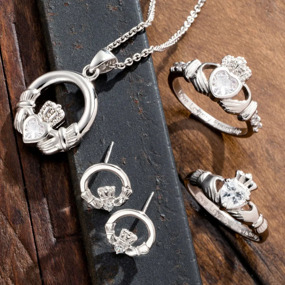 Our Claddagh Pendants are perfect for wearing as an every day accessory or for keeping for special occasions! This beautiful sterling silver pendant is designed around the Claddagh symbol, symbolising Love, Loyalty and Friendship. Pair it with the matching earrings from the Claddagh Collection. Comes presented in a gift box, perfect for gifting!