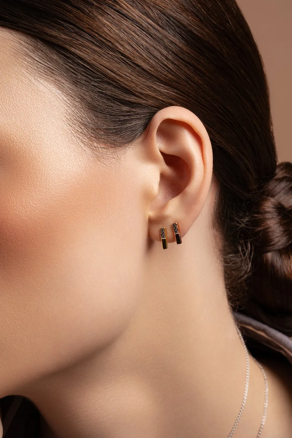 Dual Tone Bar Sterling Silver & Rose Gold Stud Earrings
