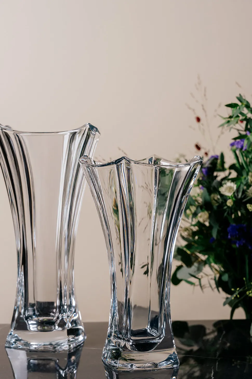 The hourglass vase is incredibly versatile and a real staple piece. Our Dune 12″ waisted vase is well suited for flowers such as your roses, hdranges and peonies. Narrow in the middle and and flared at the top. It’s curvaceous style will really accentuate the voluptuous shape of your blooms. Our Dune vase collection is elegant in both shape and design and certainly a focus point in any home.