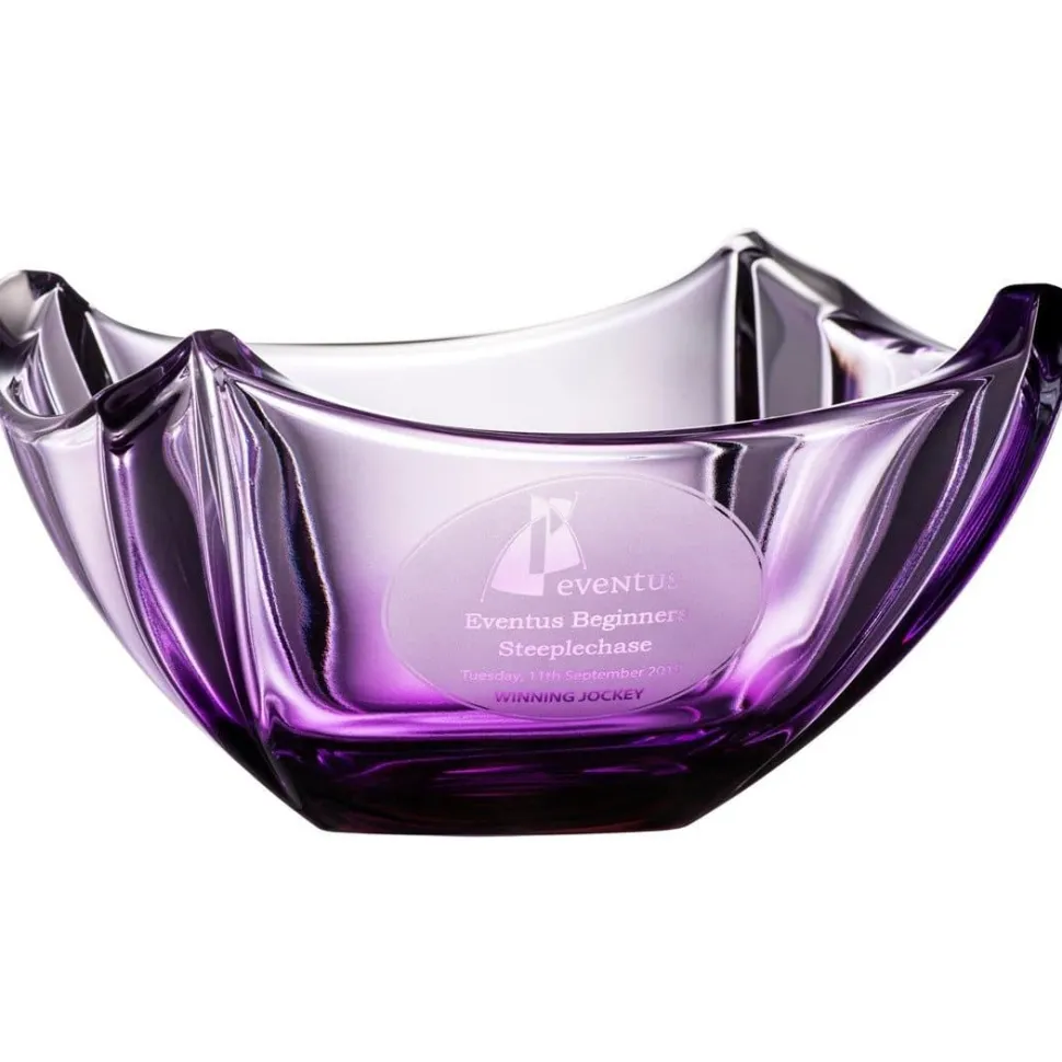 This beautifully crafted Galway Crystal Dune 10″ Bowl with a amethyst colour base is a beautiful addition to your home. The elegant shape of the bowl along with the Dune design with it’s characteristic sharp edges curving upwards, adds a stylish and modern finish. This bowl is ideal for everyday use but also makes a perfect gift as it is quite a unique piece. For Engraving just add a personal message/name & image of your choice!