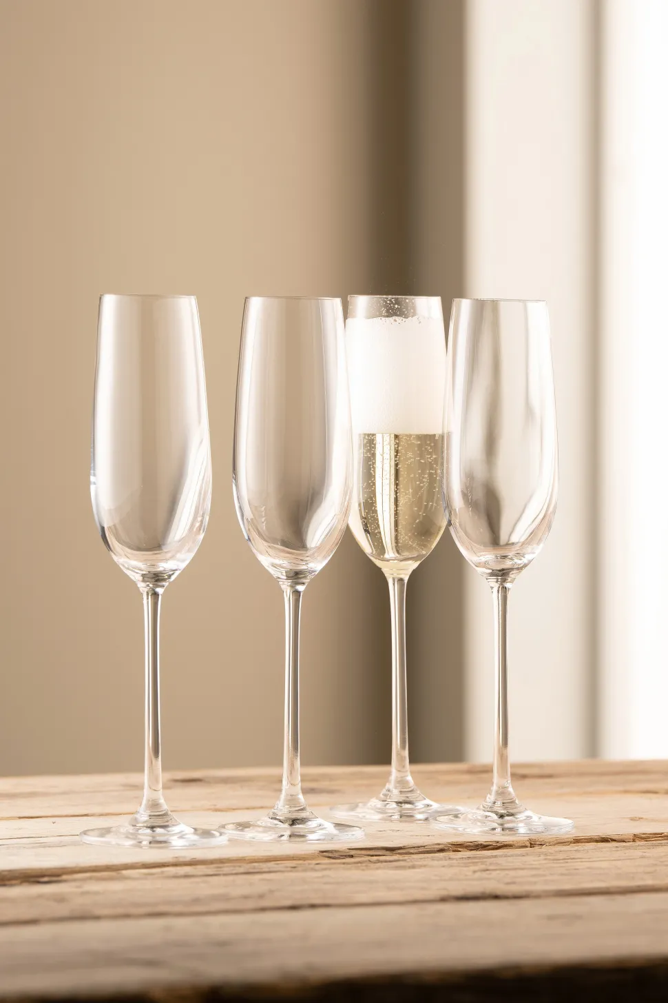 Set of 4 Beautifully slender shaped stems to be used with all varieties of sparkling wines, Prosecco or Champagne.
