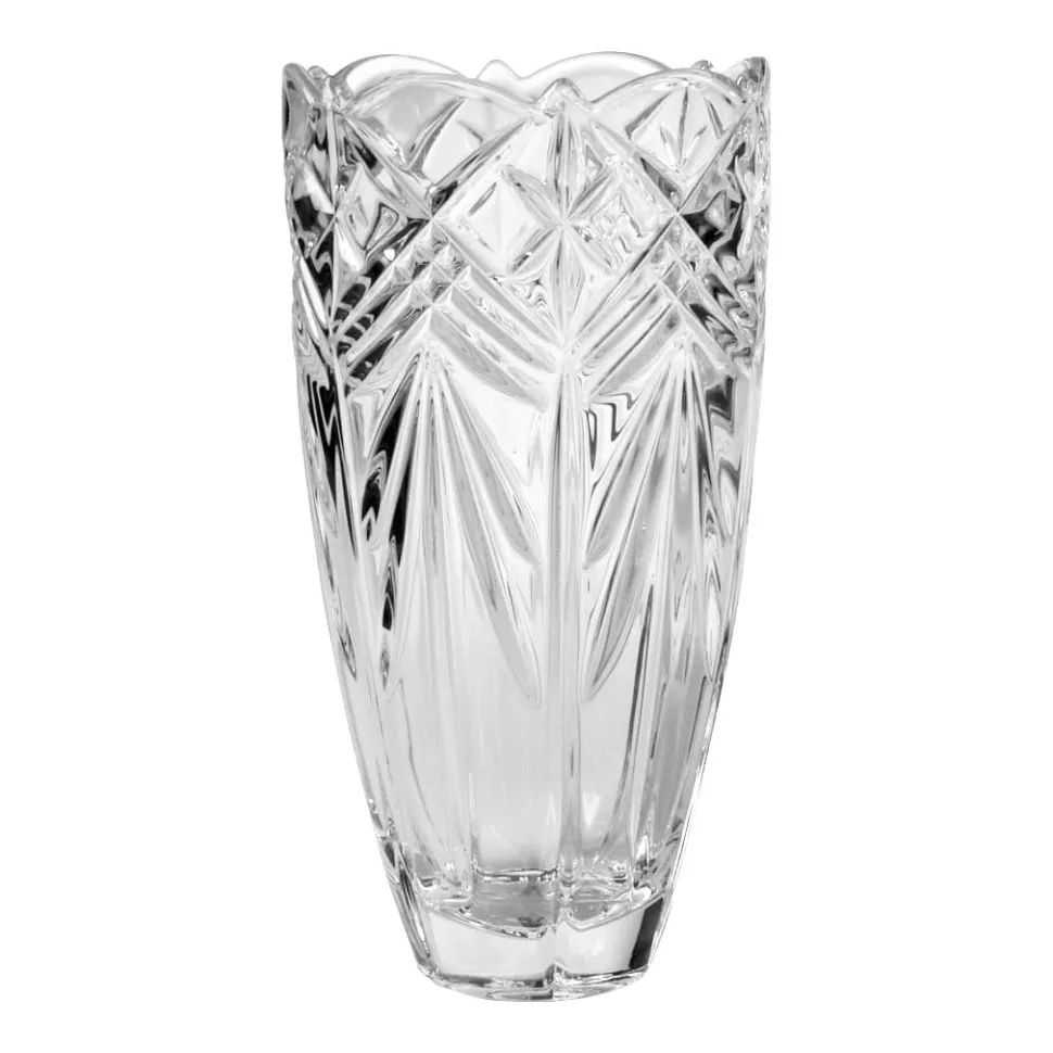 A large decorative 10″ tall crystal vase ideal for a centre-piece or floral decoration. The heavy cut reflects the light throughout the vase making it a beautiful piece for any home.
